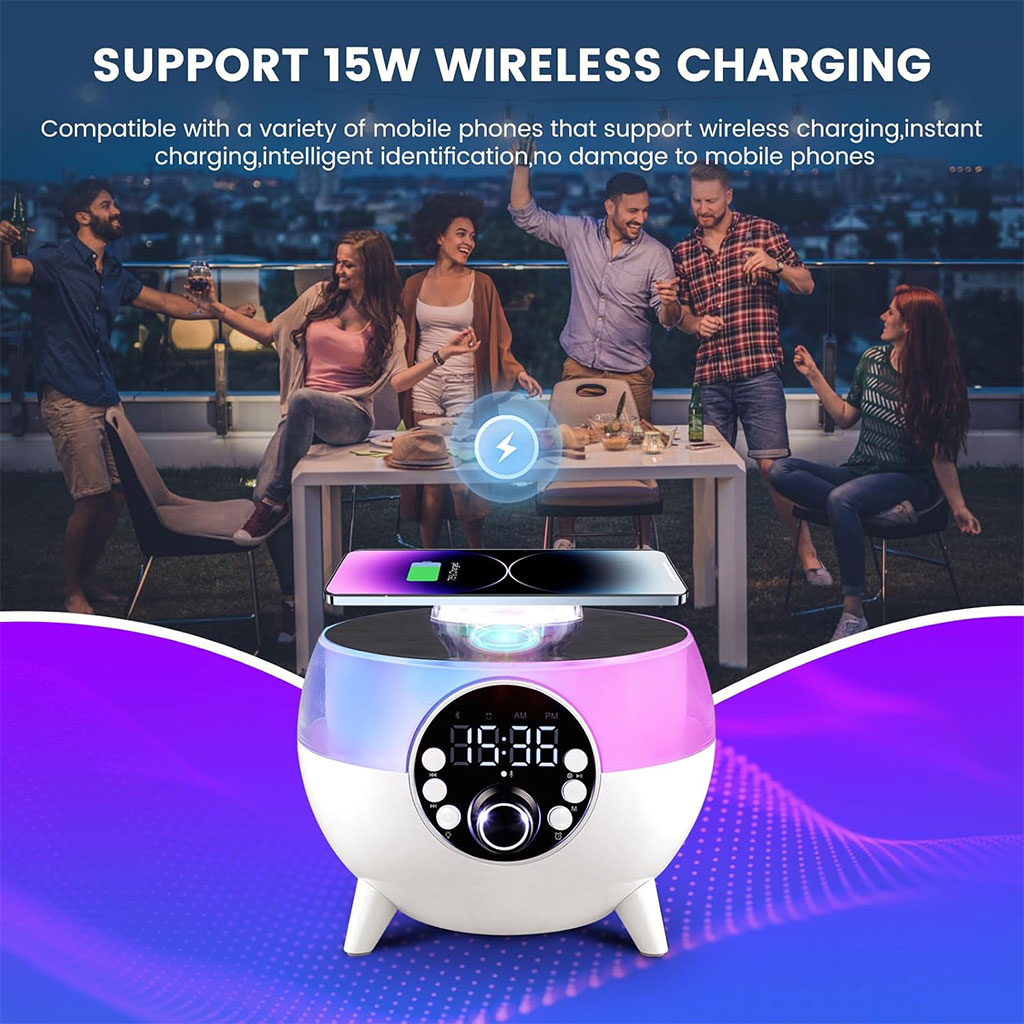 【Charge sans fil 15 W】 La lampe de bureau est équipée d’une charge sans fil de 15 W, ce qui facilite le chargement de votre téléphone. Placez simplement votre téléphone en position de charge, ce qui est pratique et facile à utiliser. Remarque : seuls les téléphones portables avec fonction de charge sans fil sont pris en charge.【Lumière changeante de couleur RVB】Cette lampe de chevet LED dispose de différents modes de couleur de lumière. Appuyez brièvement sur le bouton d’éclairage pour basculer entre les différents modes d’éclairage et ajustez la lumière en fonction de vos besoins d’éclairage dans chaque scène. Créez une atmosphère chaleureuse, confortable et relaxante.【Réveil intelligent】Notre lampe d’ambiance est une lampe qui a également des fonctions telles que la musique, la lumière de sommeil, la lumière d’ambiance, l’horloge, le réveil, etc. Peut être utilisée dans une variété de scénarios pour apporter du confort à votre vie. Vous pouvez utiliser cette lampe de chevet multifonctionnelle pendant que vous travaillez, étudiez ou dormez.【Haut-parleur sans fil】Cette lampe de bureau LED diffuse votre musique préférée et dispose d’une sortie sonore à 360°. Laissez-vous calmer, vous détendre et vous immerger dedans. Il prend en charge quatre modes sans fil, AUX, disque USB et carte TF. La lampe de chevet LED avec haut-parleur vous permet de profiter de la musique à tout moment et n’importe où.【Cadeau parfait】Une lampe de table qui intègre un éclairage d’ambiance, un réveil, un son et une charge sans fil, adaptée au chevet, à la chambre, au salon, aux fêtes et à la décoration de la maison. Cette lampe de bureau intelligente est le cadeau parfait pour la décoration de la chambre, les anniversaires et plus encore.