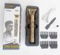 Fabriqué en acier et a un très beau design. Couleur  doré Lame en acier tranchante Conçu pour la coupe de cheveux, le modelage de la barbe, la bordure. Alimenté par une batterie intégrée de 1200 mAh.Chargé via USBFORFAIT :Boîte.Tondeuse.3 buses.Brosse.Le beurre.Chargeur de batterie.